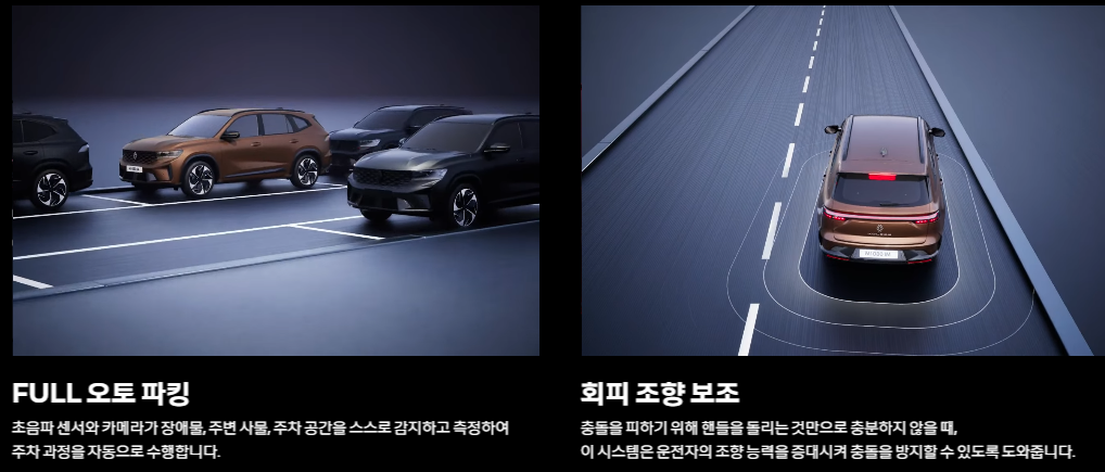 - 편리한 주차 기능 : 자동 주차 및 출차 기능으로 좁은 공간에서도 간편하게 차량을 이동할 수 있습니다.