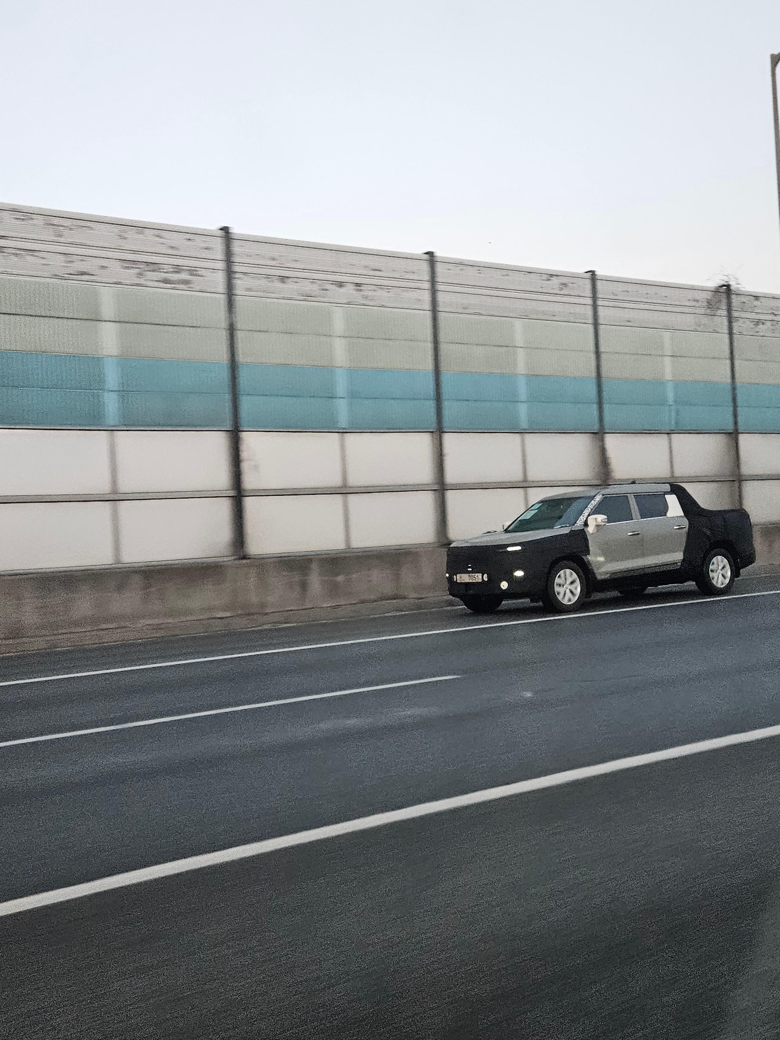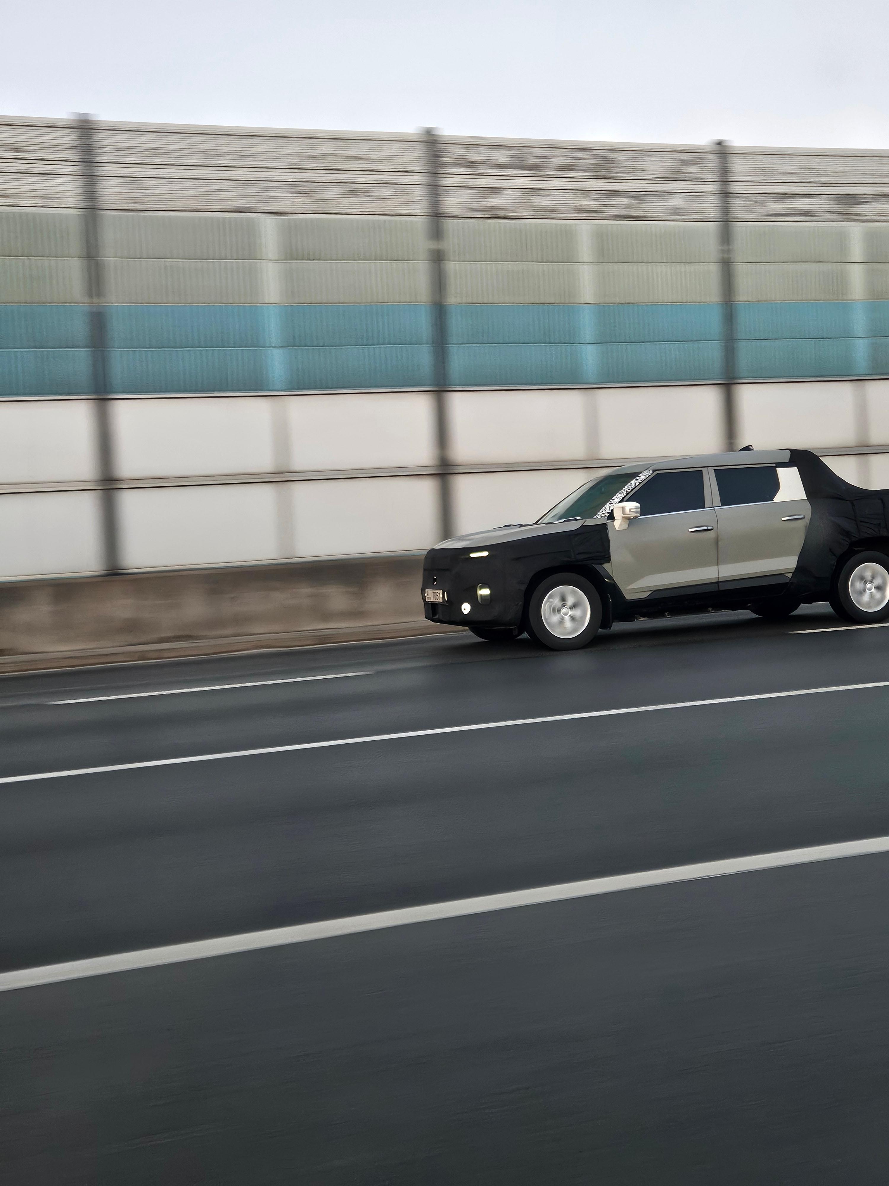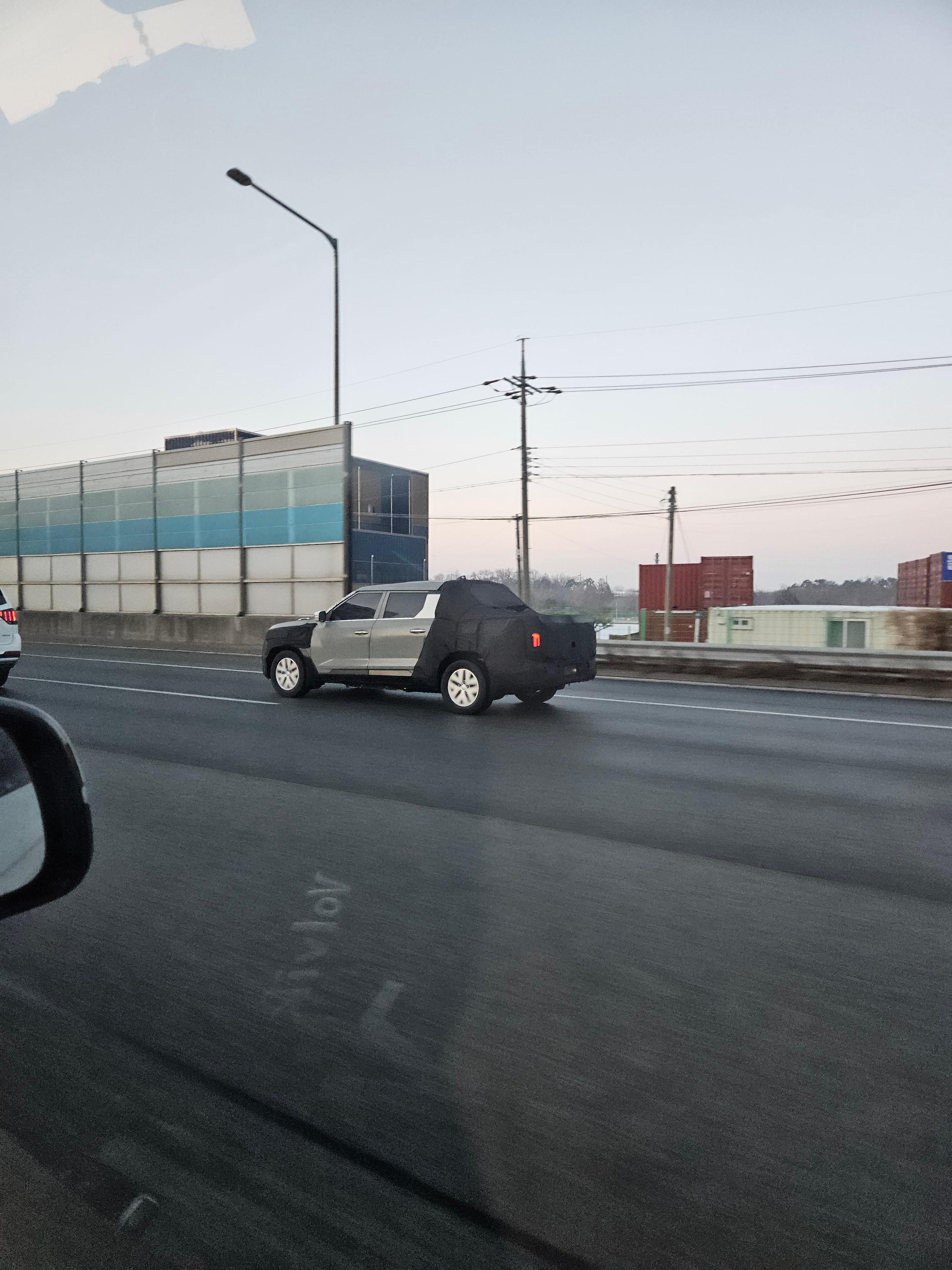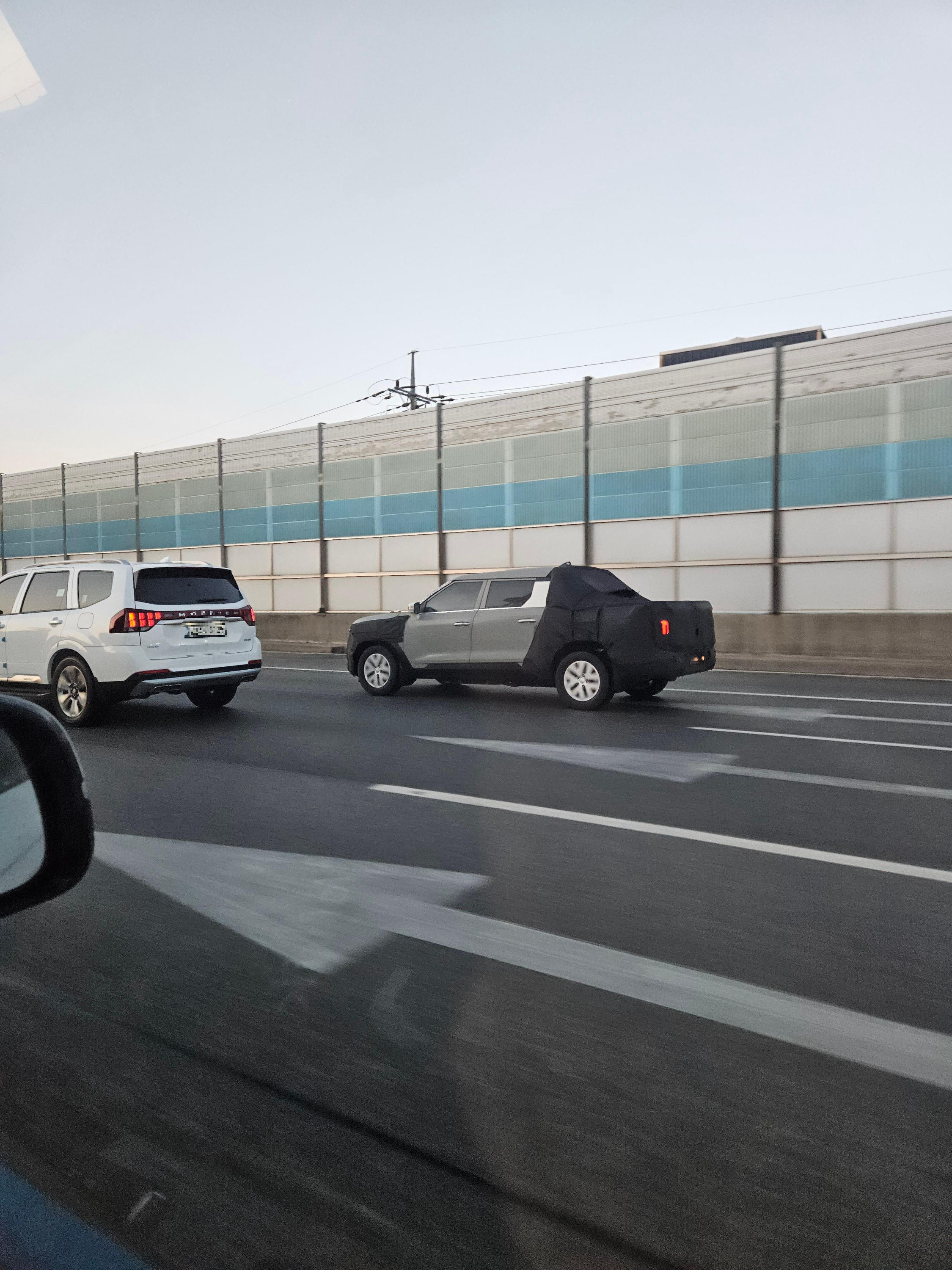 경부고속도로를 가다가 옆에서 달리고 있던 픽업트럭을 봤는데요, 옆모습과 해드라이트를 보니 영락없는 토레스 모양이네요. 그리고 배기구가 없는것이 영락없는 무쏘 EV5 테스트 주행을 하는 모습이었어요. 고속도로 주행을 평가하는 것 같은데 금방 조만간 출시되기를 기대해봅니다