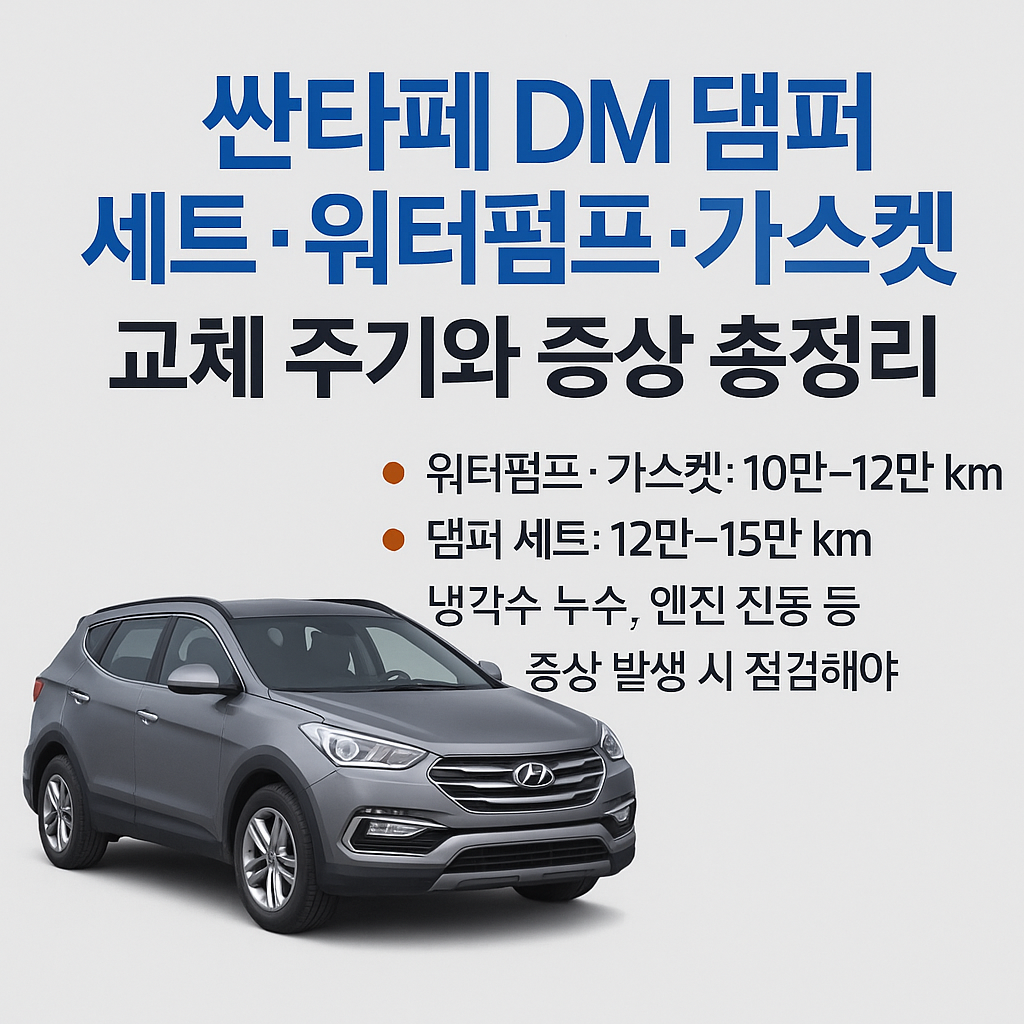 - 싼타페 DM의 댐퍼 세트, 워터펌프, 가스켓은 엔진의 안정성과 냉각을 책임지는 핵심 부품입니다.