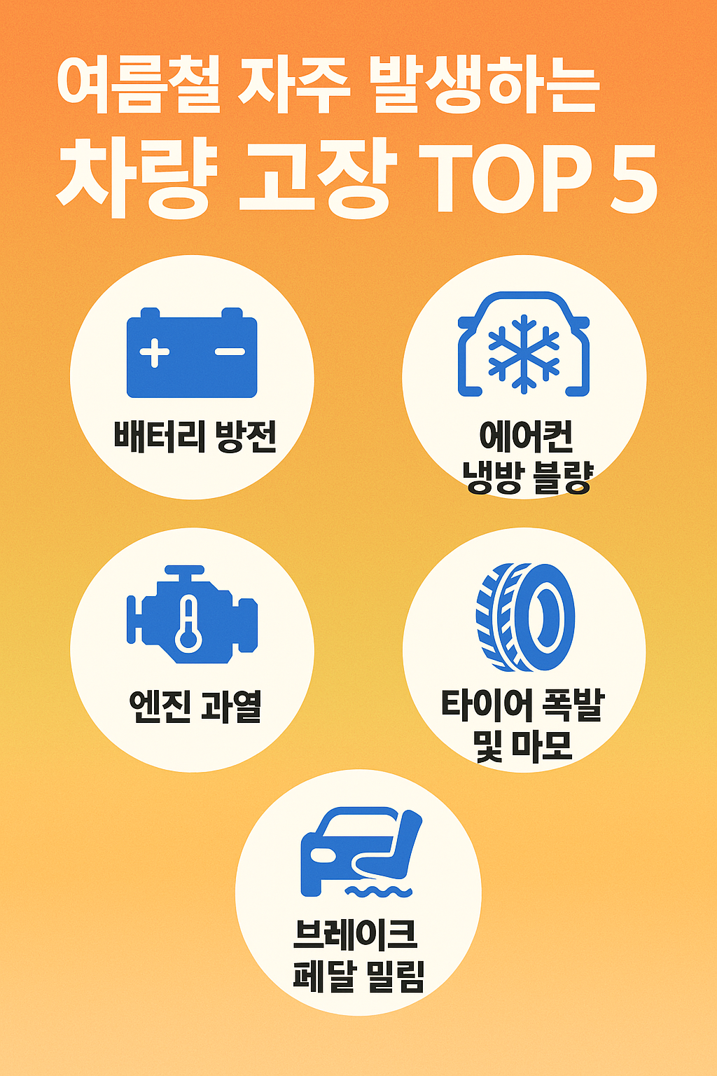 여름철 고장은 갑작스럽게, 비용은 크게 발생합니다. 휴가철이나 출퇴근길 불편을 막으려면 사전 점검과 예방이 가장 확실한 보험입니다.