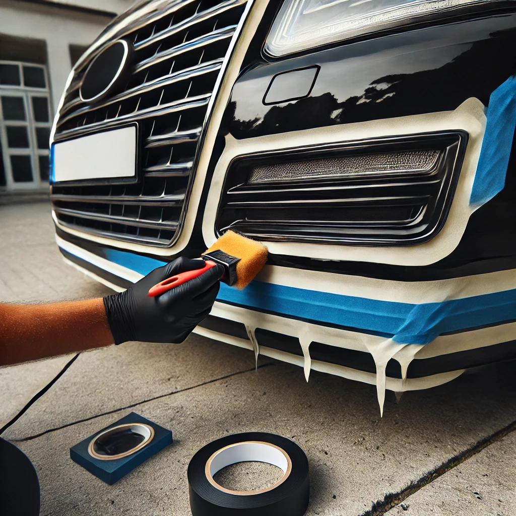 복원제가 도장면에 묻지 않도록 페인터 테이프를 사용해 플라스틱 주변을 보호합니다.