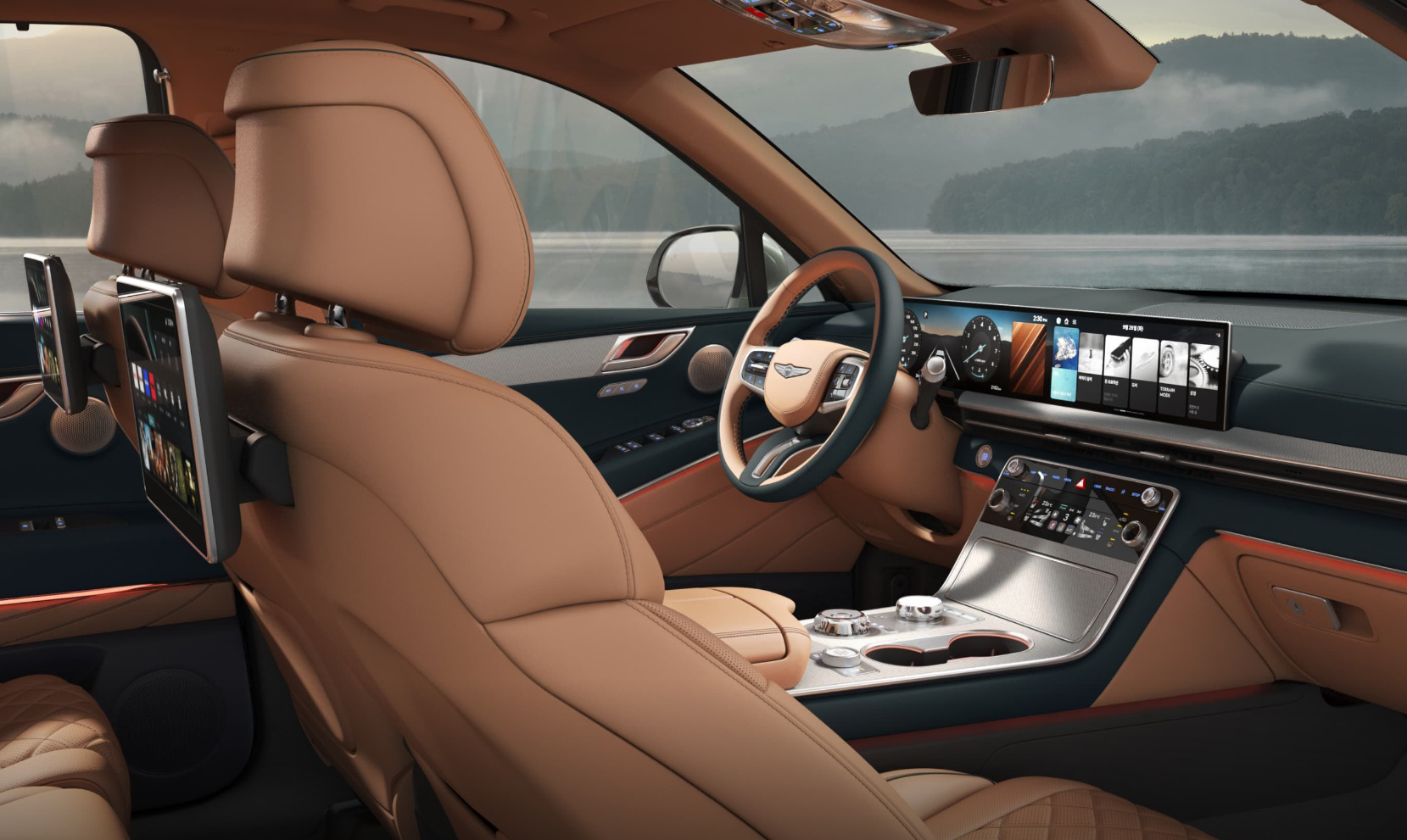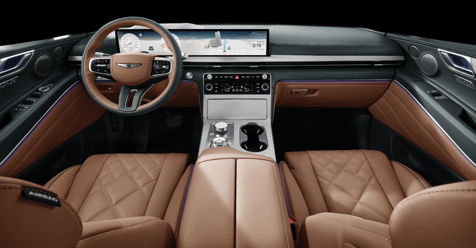 - 제네시스의 시그니처 크레스트 그릴과 날렵한 쿼드 램프가 적용될 예정입니다.