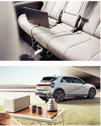 • V2L(Vehicle-to-Load) 기능으로 전력을 외부로 공급 가능(캠핑 등에서 유용).