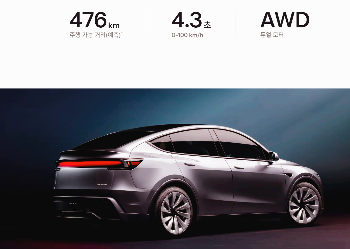 • 듀얼 모터 퍼포먼스 모델: WLTP 기준 약 500km 주행 거리.