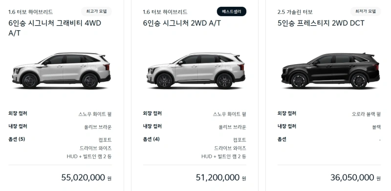 2025 쏘렌토 하이브리드는 다양한 옵션을 제공합니다. 개인의 취향과 필요에 맞춘 선택이 가능합니다.